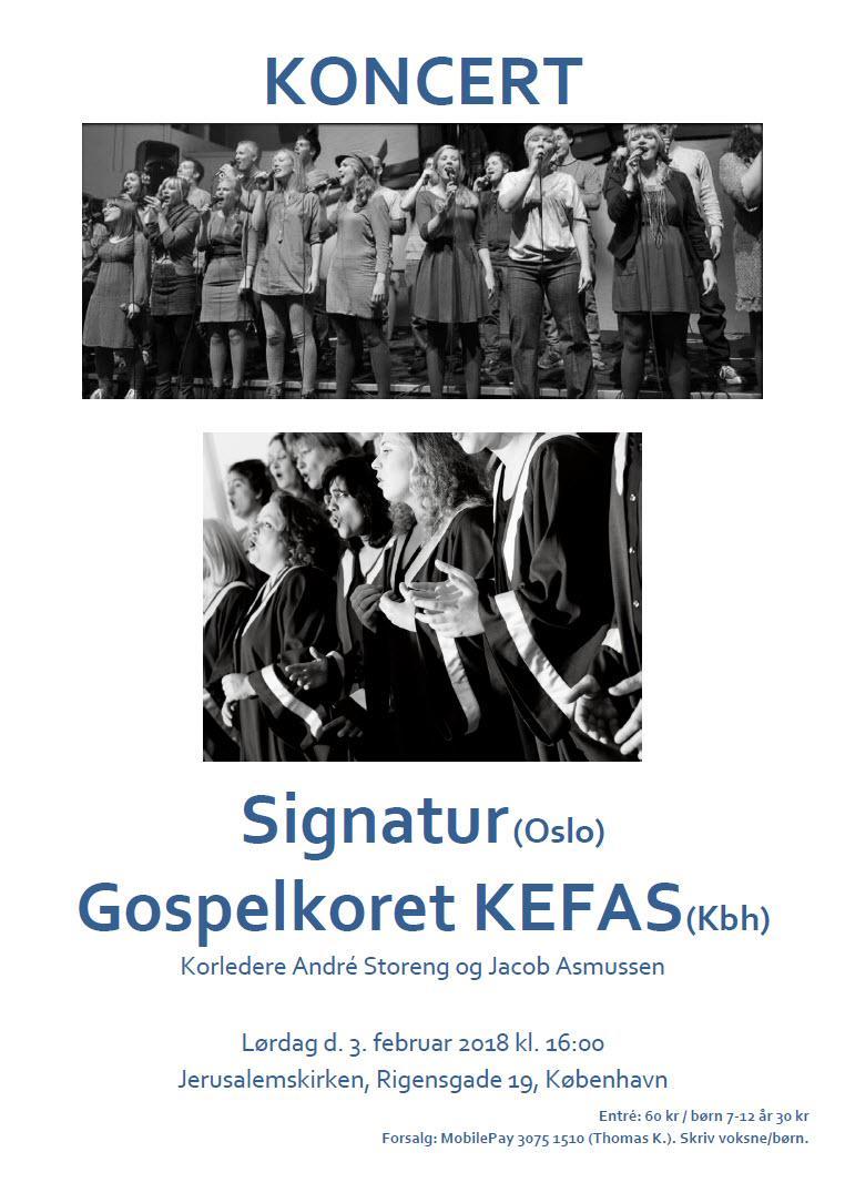 Kom og hør gospelkoret Signatur fra Oslo sammen med KEFAS fra København lørdag d. 3.februar 2018!